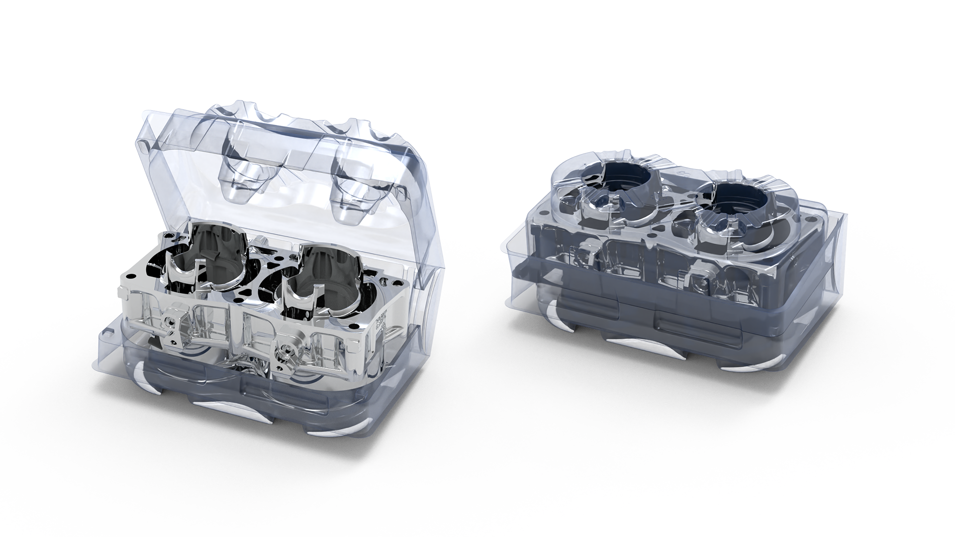Questi polimeri trasparenti si utilizzano quando è necessario esporre il prodotto destinato al mercato consumer e in ogni caso quando serve visualizzare il prodotto, interamente o in parte. Blister e Valigette (Clamshell) sono le soluzioni termoformate che impiegano PET e PVC. La trasparenza della plastica assicura visibilità al prodotto e consente al consumatore di valutare il prodotto prima dell’acquisto.